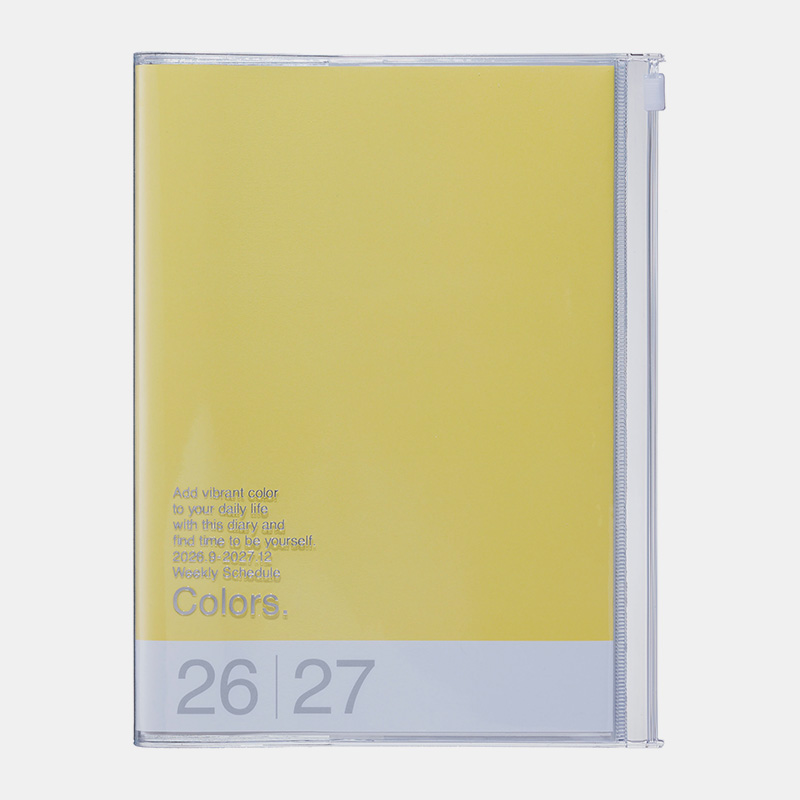 Páginas Agenda: Plan Anual: Años 2026 - 2027 - 2028 - 2029. Calendario a doble página. Plan Mensual: de septiembre 2026 a diciembre 2027. Doble página por mes. Plan Semanal: del 26 de agosto 2026 al 4 de enero 2028. Cada semana a doble página con 16 horas en vertical. Número de día y número de semana. Festivos de 27 países, entre ellos España.