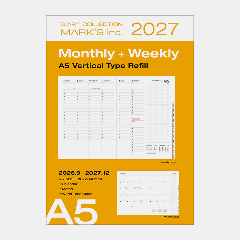 Recambio para agenda A5 semanal vertical Septiembre 2026 a Diciembre 2028.