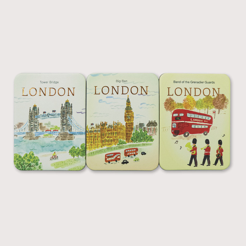 Set de 3 imanes decorativos inspirados en ciudades icónicas, perfectos para tu nevera o escritorio.