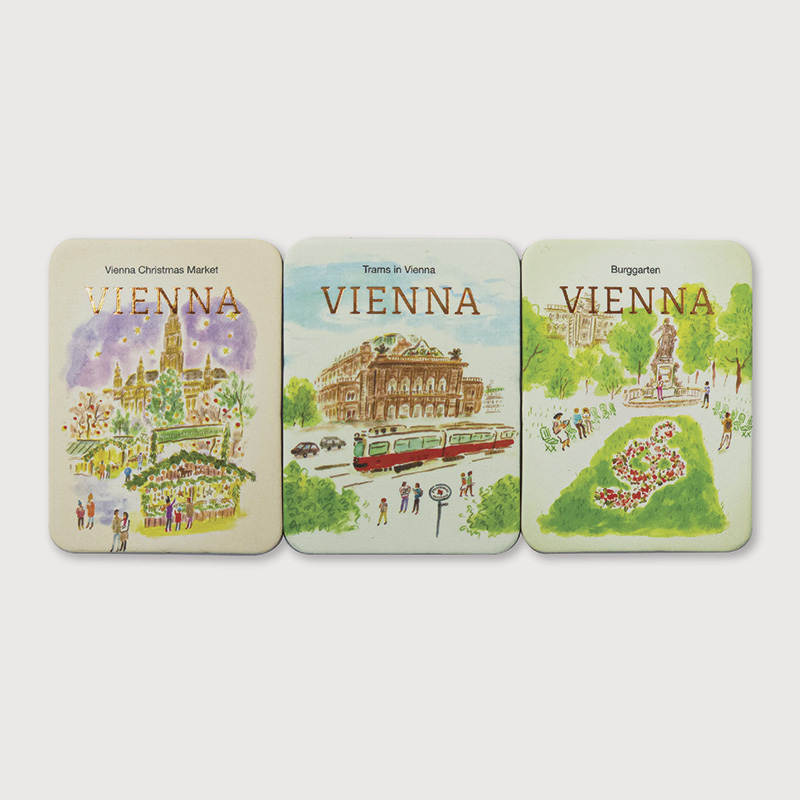 Set de 3 imanes decorativos inspirados en ciudades icónicas, perfectos para tu nevera o escritorio.
