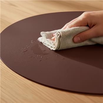 Individual de mesa práctico, sobrio y elegante con una superficie de fácil limpieza. Es un producto sostenible y duradero, hecho a mano con cuero 100% reciclado.