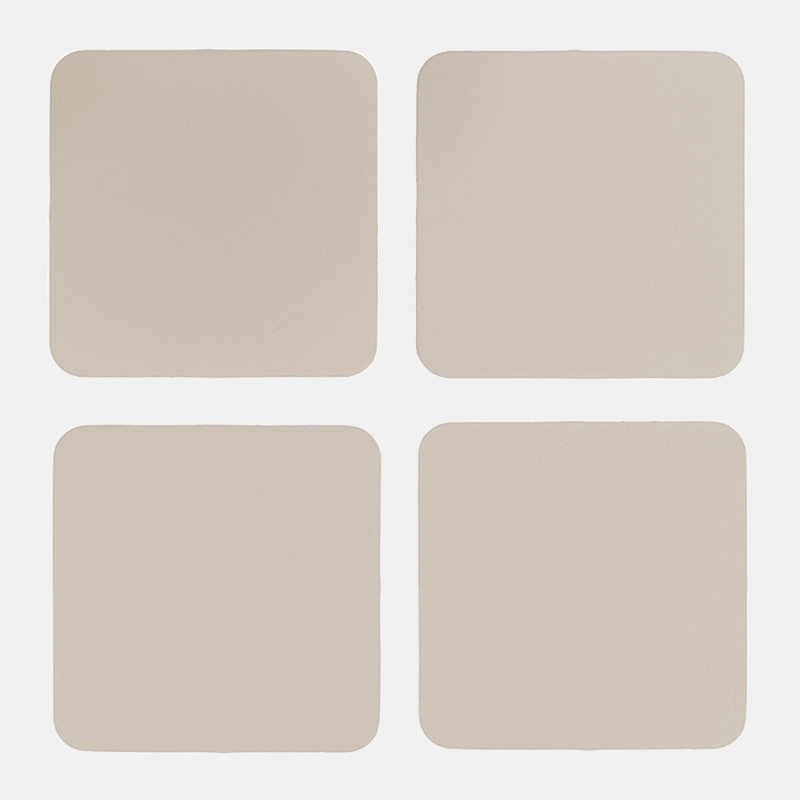 Set de 4 posavasos, ideal para proteger tus muebles. Es un producto sostenible y duradero, hecho a mano con cuero 100% reciclado.