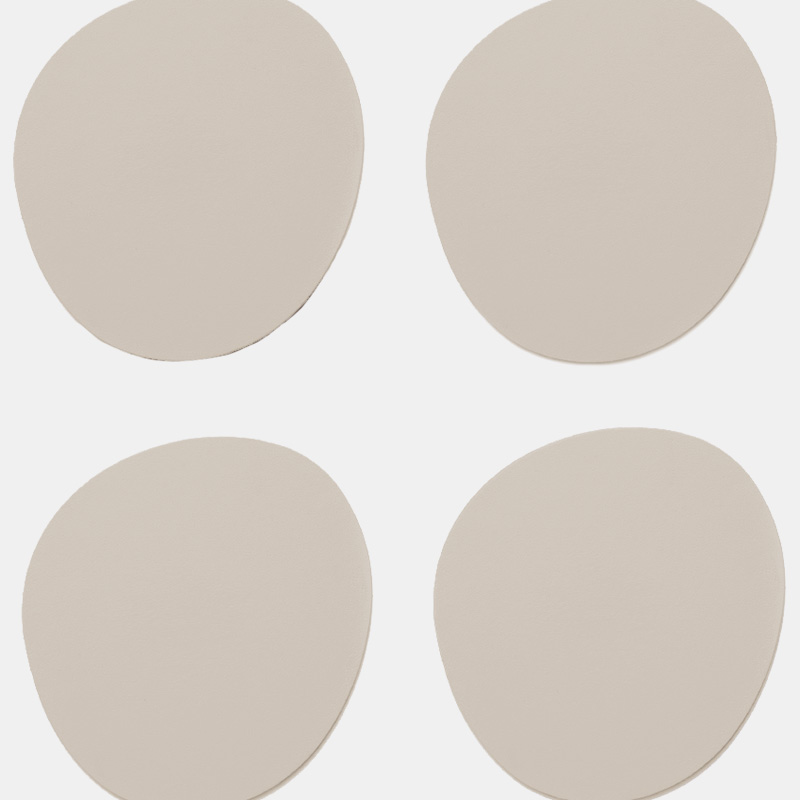 Set de 4 posavasos, ideal para proteger tus muebles. Es un producto sostenible y duradero, hecho a mano con cuero 100% reciclado.