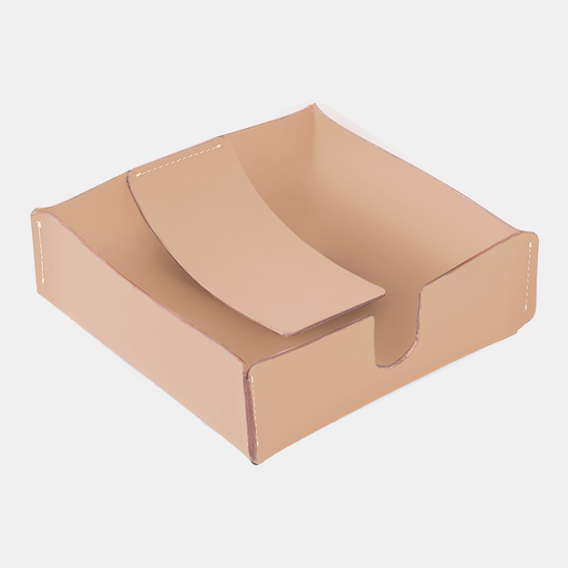 Servilletero Ruca. Práctico y sobrio con superficie de fácil limpieza. Es un producto sostenible y duradero, hecho a mano con cuero 100% reciclado.