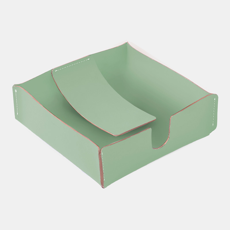 Servilletero Ruca. Práctico y sobrio con superficie de fácil limpieza. Es un producto sostenible y duradero, hecho a mano con cuero 100% reciclado.