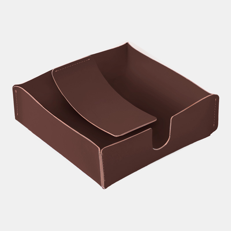 Servilletero Ruca. Práctico y sobrio con superficie de fácil limpieza. Es un producto sostenible y duradero, hecho a mano con cuero 100% reciclado.
