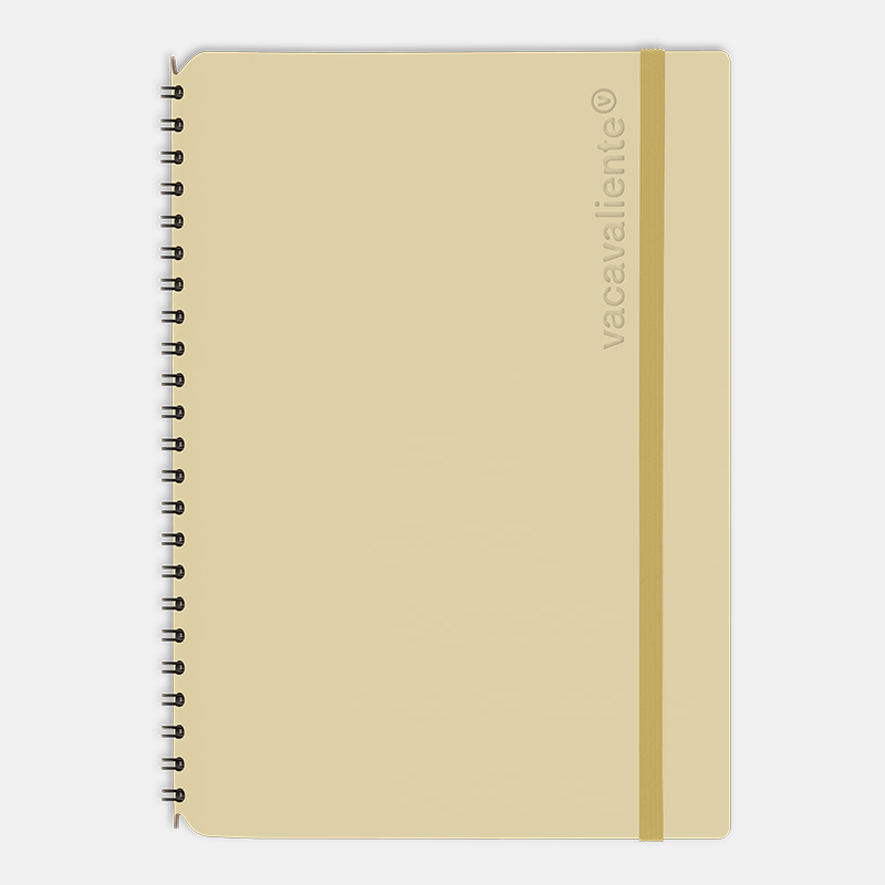 Cuaderno con formato de libreta, tamaño A5 de 80 hojas rayadas y espiral protegido. Diseñado para la escritura espontánea y recreativa. Es un producto sostenible y duradero, hecho a mano con cuero 100% reciclado.