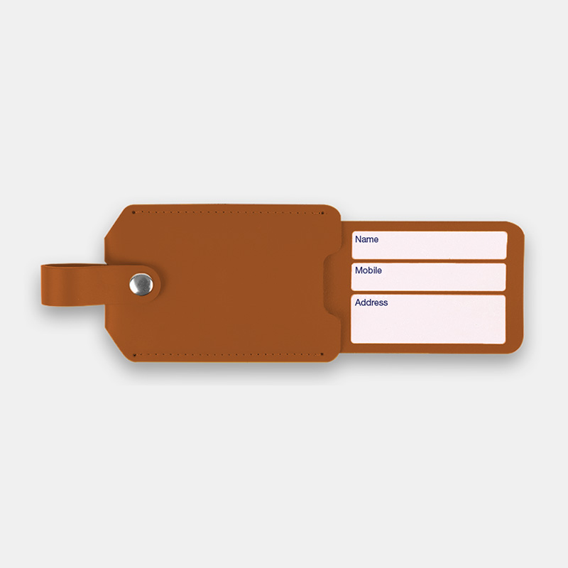 Etiqueta de equipaje ideal para darle un toque final a cualquier bolso o equipaje. Viene con una ranura para tarjeta transparente para que pueda colocar su tarjeta de visita o escribir información personal. Es un producto sostenible y duradero, hecho a mano con cuero 100% reciclado.