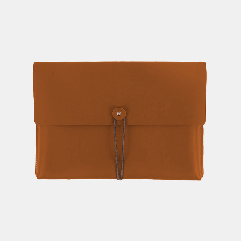 Este porta papeles tamaño A4 vertical, realizado con un diseño minimalista y agradable al tacto, es ideal para llevar y proteger tanto papeles como documentos. Es un producto sostenible y duradero, hecho a mano con cuero 100% reciclado.