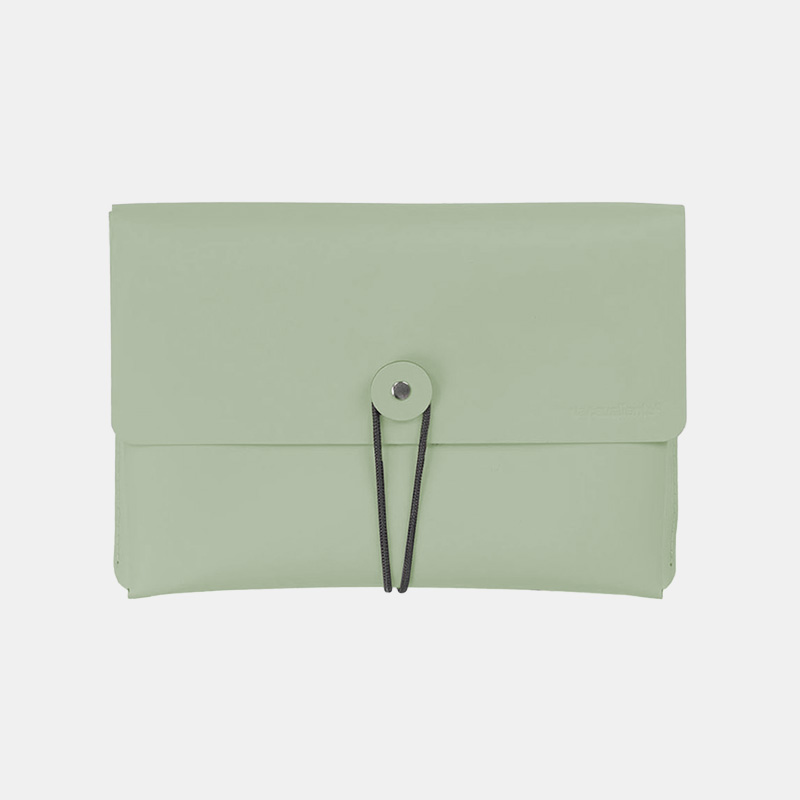 Este porta papeles tamaño A5, realizado con un diseño minimalista y agradable al tacto, es ideal para llevar y proteger tanto papeles como documentos. Es un producto sostenible y duradero, hecho a mano con cuero 100% reciclado.