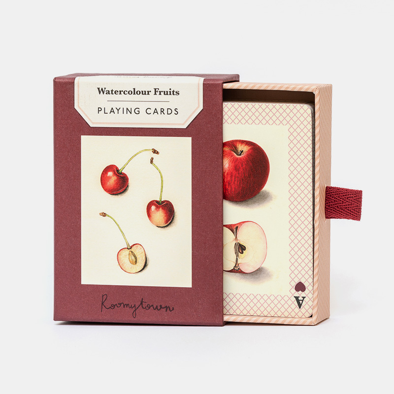 Esta baraja de 52 cartas presenta impresionantes ilustraciones en acuarela de un libro francés sobre flores y frutas publicado por primera vez en 1830. El equipo de diseño de Roomytown en Bath, Reino Unido, seleccionó cuidadosamente las ilustraciones de frutas más cautivadoras de este tesoro vintage para crear esta baraja única, con cada carta diseñada individualmente.