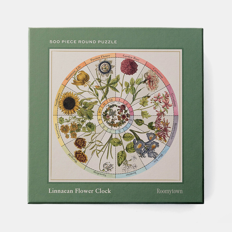 Adéntrate en el fascinante mundo de la botánica del siglo XVIII con este rompecabezas redondo de 500 piezas, inspirado en la teoría del reloj floral de Carl Linnaeus. Con 61 cm de diámetro, el diseño presenta detalladas ilustraciones de flores extraídas de un libro británico de floricultura del siglo XVIII, cuidadosamente organizadas para reflejar el concepto de Linnaeus: flores que abren y cierran sus pétalos en momentos precisos del día.