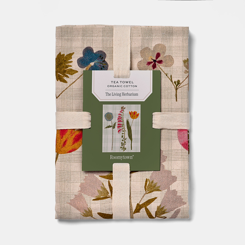 Este paño de cocina 100% algodón orgánico presenta una colección de ilustraciones florales extraídas de un herbario del siglo XVIII creado mediante impresión natural (circa 1733). Cada espécimen botánico ha sido delicadamente restaurado y adaptado por el equipo de diseño de Roomytown, luego combinado con un fondo de patrón de tejido vintage reproducido de muestras textiles francesas del siglo XIX de la histórica empresa Robert Maison. El resultado es una composición elegante y refinada, que se siente atemporal y claramente botánica.