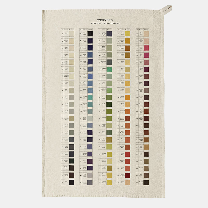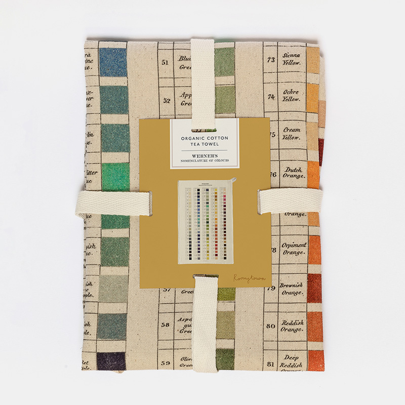 Esta toalla de cocina 100% algodón orgánico captura el encanto histórico de la Nomenclatura de Colores de Werner, utilizada por pioneros como Charles Darwin para categorizar los colores inspirándose en la naturaleza. El equipo de diseño de Roomytown en Bath, Reino Unido, ha curado el diseño adaptando las muestras de color de Werner publicadas por P. Syme en 1821.
