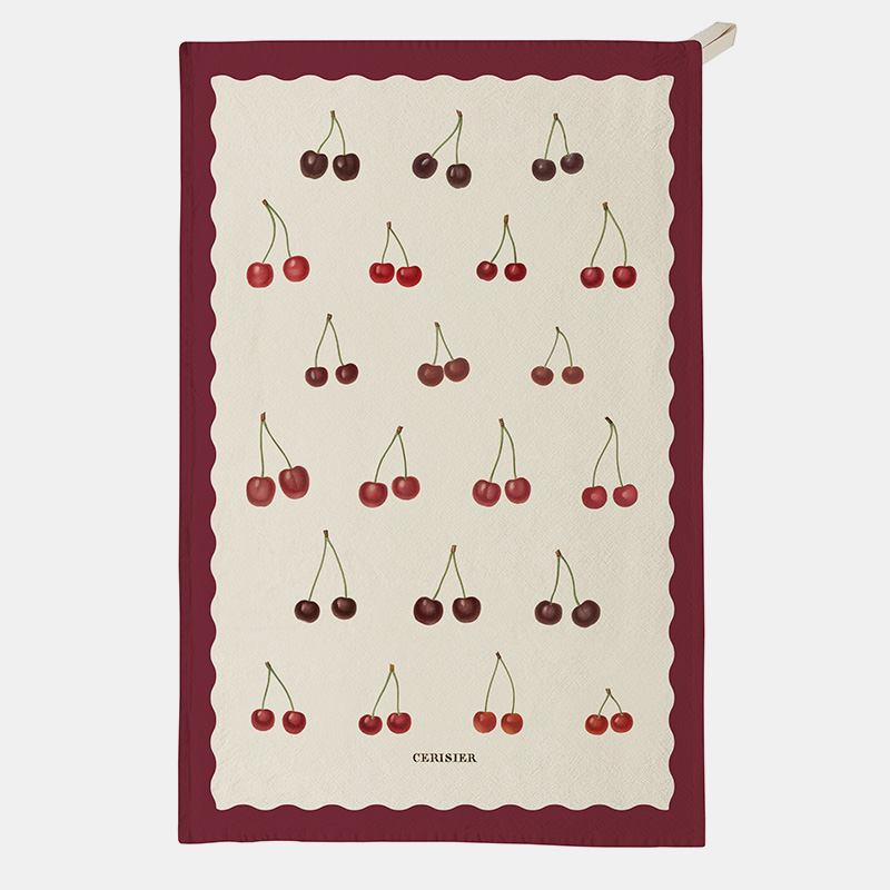 El diseño de esta toalla de cocina 100% algodón orgánico Cerezas se ha creado a partir de ilustraciones de cerezas extraídas de un libro francés sobre flores y frutas publicado en 1830. El equipo de diseño de Roomytown en Bath, Reino Unido, ha adaptado y mejorado cuidadosamente las obras originales para dar nueva vida a estas delicadas ilustraciones en acuarela.