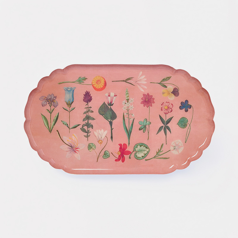 Lleva un toque de belleza atemporal a tu mesa con esta bandeja de metal esmaltado de borde ondulado Festival de Flores, decorada con exquisitas ilustraciones florales pintadas a mano a principios del siglo XVII. Las ilustraciones se descubrieron en las páginas en blanco de un libro bávaro de bautizos publicado en 1596, donde un artista desconocido añadió delicadas flores en acuarela con extraordinario detalle y cuidado.