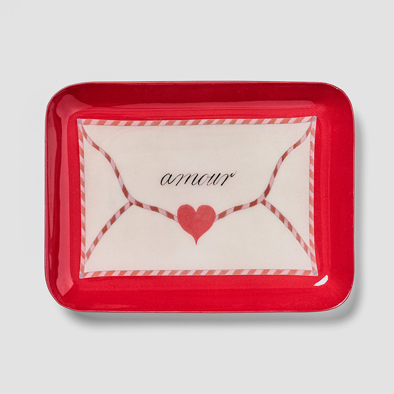 Añade un toque de encanto vintage a tu hogar con esta bandeja rectangular de metal esmaltado Carta de Amor. Inspirada en una tarjeta de San Valentín del siglo XIX —similar a las que se intercambiaban y se guardaban con cariño en cajas ornamentadas de la época—, el diseño destaca un motivo de corazón y la palabra manuscrita amour, estilizada como una carta de amor romántica. Captura el espíritu sentimental de la época victoriana, cuando los pequeños obsequios de afecto eran atesorados y bellamente elaborados.