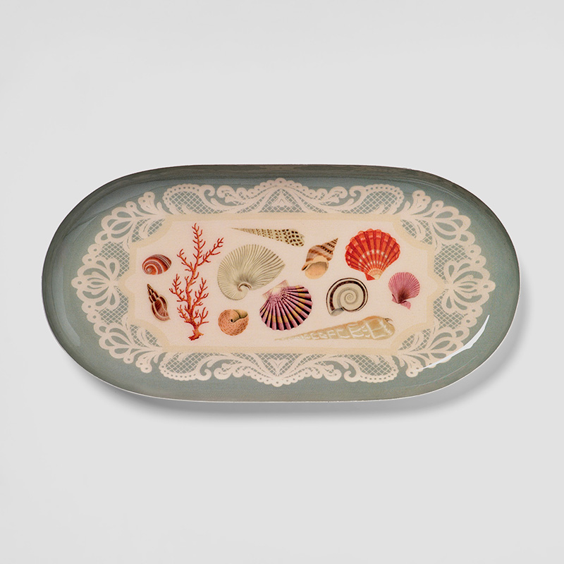 Añade un toque de curiosidad costera a tu hogar con esta bandeja ovalada de metal esmaltado Specimens of the Sea. El elegante diseño destaca especímenes marinos detalladamente ilustrados, extraídos de libros de historia natural del siglo XVIII, capturando la maravilla y el detalle fino de la exploración científica temprana. Las conchas y criaturas marinas están enmarcadas por un delicado encaje, creando una composición refinada con inspiración vintage que aporta un encanto náutico discreto a cualquier espacio.