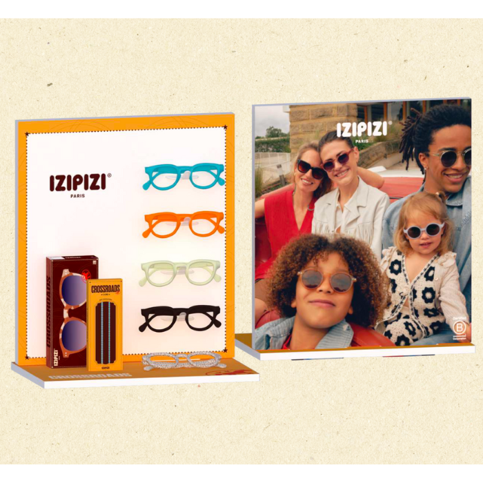 Nuevo expositor para gafas IZIPIZI colección Crossroad. Permite exponer 4 gafas.